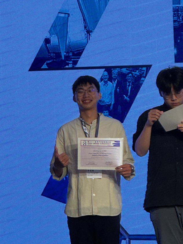 自從進入王孝祖老師的實驗室進行專題研究以來,我對先進材料、光譜分析技術以及前沿同步輻射研究的興趣愈加濃厚。在實驗室的學習過程中,我逐步熟悉了多項同步輻射相關技術,例如 XAS、XRD、以及 STXM的操作與數據處理,並且有機會前往國內外頂尖同步輻射設施台灣的NSRRC、日本的SPring-8、UVSOR等地進行研究。在老師的指導下,我順利完成大專生研究計畫,並參與多項國際合作研究,負責同步輻射實驗與數據分析工作。這段過程中,我最大的收穫是培養了獨立思考與解決問題的能力。除了專業技能的提升,在與老師進行研究討論與報告的過程中,我也逐漸增進了表達能力與邏輯思考。同時,實驗操作需要高度的細心與耐心,讓我學會在壓力下保持冷靜與專注。實驗室的學習經驗讓我在專業知識、實驗技能與心態上都有顯著成長。我衷心感謝指導教授的悉心指導,以及學長姐與同儕的支持,使我能在這段歷程中獲得寶貴的收穫,也在此次31屆國家同步輻射中心用戶年會壁報展示比賽材料科學組唯二私立大學佳作。